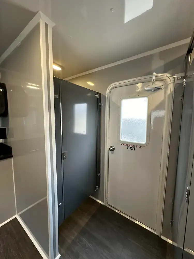 Each Mobile Restrooms RV is weighed at the manufacturing facility prior to shipping. A label identifying the unloaded vehicle weight of the actual unit and the cargo carrying capacity is applied to every Mobile Restrooms RV prior to leaving our facilities.